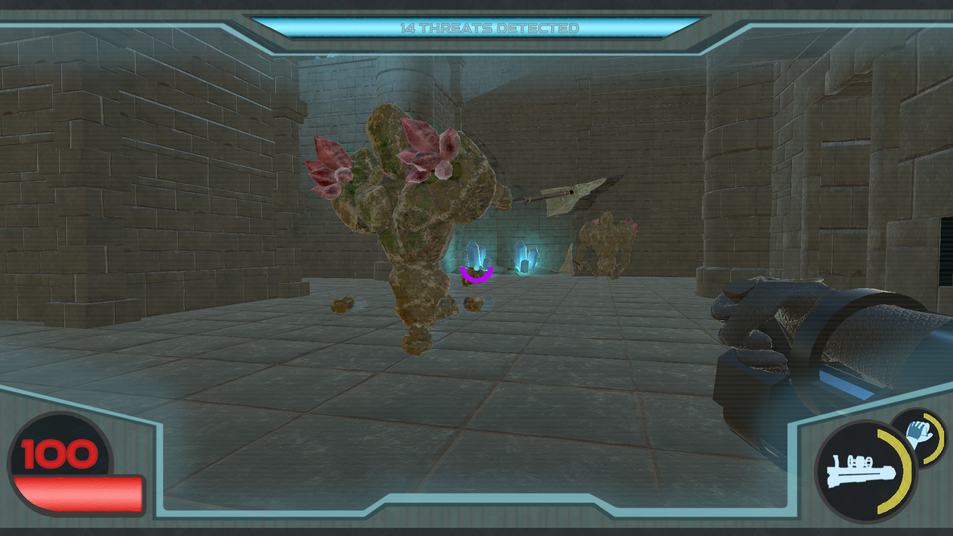 During this project, I was responsible for designing the game’s enemies, sentient rock guardians that inhabit the ancient temple the player explores. A core mechanic allows players to pick up the same weapons used by these enemies and convert them into sci-fi variants using a multitool bangle. This created a unique design challenge: each weapon needed to feel engaging and satisfying both when wielded by the player and when used against the player by the enemies.